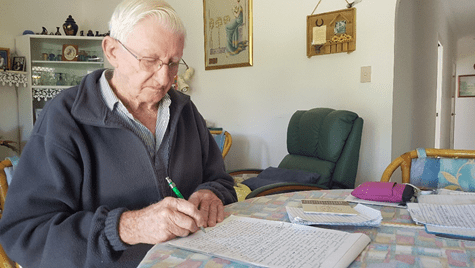 As Bev speaks he reminisces, sharing memories he speaks about his wife. Meeting Verina on the hockey field as teenagers, having dinner with the Governor-General when she was the NW QLD Commissioner of Girl Guides